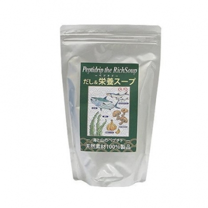『だし&栄養スープ』はその名の通り、料理の「だし」として使用すると素材の味を引き出し、お湯を注ぐだけで天然の栄養抜群スープになる微粉末です。