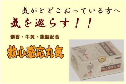 - ≪救心感應丸氣≫は、日本の伝統的な処方をもとにした和漢薬で、精選した麝香、牛黄等の七種の動植物生薬と、熊胆の主要成分であるウルソデオキシコール酸を配合した製剤です。